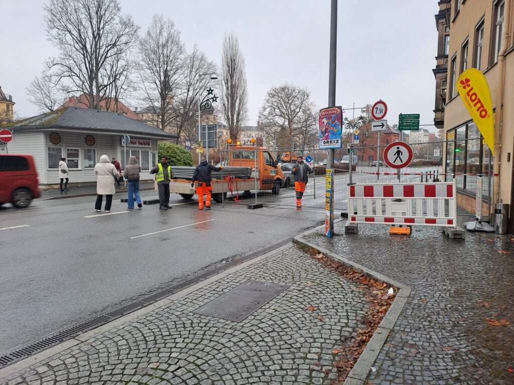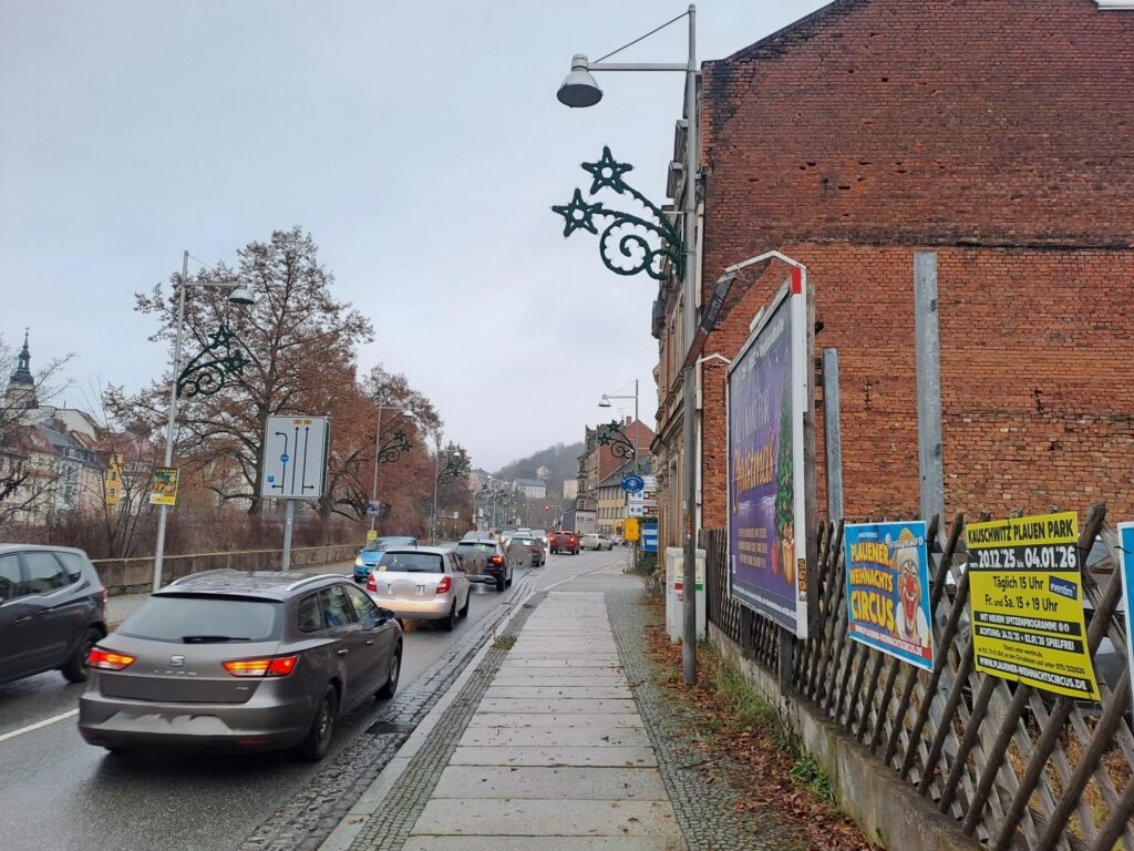 Die Bruno-Bergner-Straße wurde zwischen dem Kreisverkehr Bruno-Bergner-Straße und Carolinenstraße in Fahrtrichtung Reichenbach seit Mittwochnachmittag aufgrund des stark einsturzgefährdeten Hauses Nr. 2 gesperrt.
