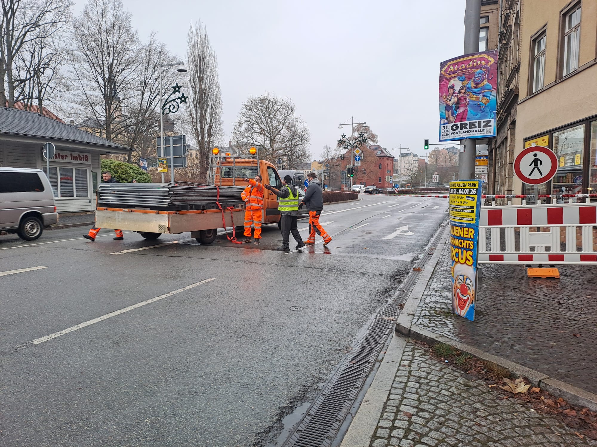 Die örtliche Verkehrsleittechnik Jahn sperrte den Straßenabschnitt und richtete stadteinwärts eine Umleitung Richtung Plauen ein, die über den Papiermühlenweg wieder zurück in die Stadt führt. Die Fahrtrichtung Zeulenroda ist aktuell frei befahrbar. Auf die Frage, wie lange die Sperrung anhalten soll, konnten uns seitens der Firma Jahn leider keine näheren Angaben gemacht werden. Wir bleiben dran, wie lange es dauern wird. (Fotos von MH)