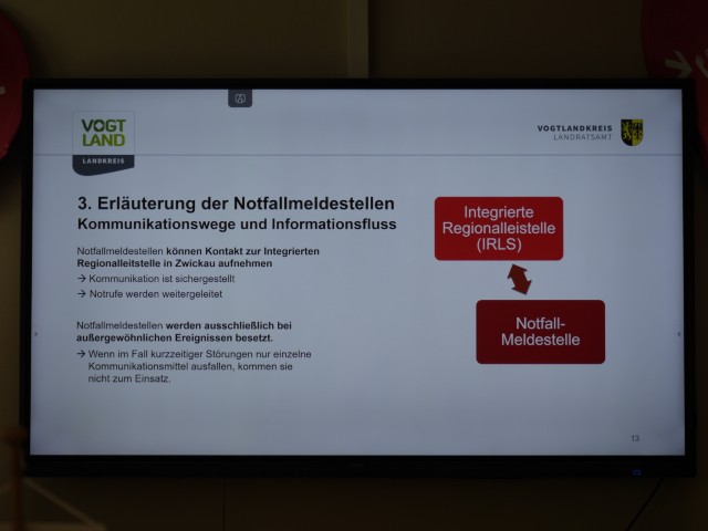 Daher hatte der Vogtlandkreis schon länger geplant und befindet sich nun in der Umsetzung der Notfallmeldestellen (NMS). Diese NMS dienen als Anlaufpunkte für die Bevölkerung im o.g. Szenario, wenn also die Kommunikation inklusive der bekannten Notfallnummern 110 und 112 ausfällt. Auf Nachfrage des FP-Redakteurs bestätigte Herr Kühnert, Leiter der Rettungsleitstelle Zwickau, das genau dies bei einem längeren Stromausfall geschieht.