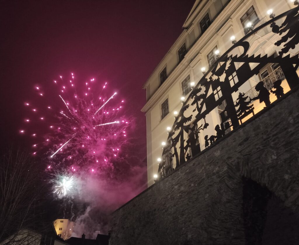 (Greiz). Am 13.12.2025 wurde über dem Greizer Weihnachtsmarkt nachgeholt, was wegen Schlechtwetter zum Park- und Schlossfest (PuSF) leider ausfallen musste: das Feuerwerk. So sehr sich die Besucher an diesem Feuerwerk erfreuten, meldeten sich doch auch nachdenkliche Stimmen. Ist es zeitgemäß, für ein Feuerwerk zu Weihnachten Geld auszugeben, wenn gleichzeitig beliebte Einrichtungen wie die Eisbahn geschlossen werden?