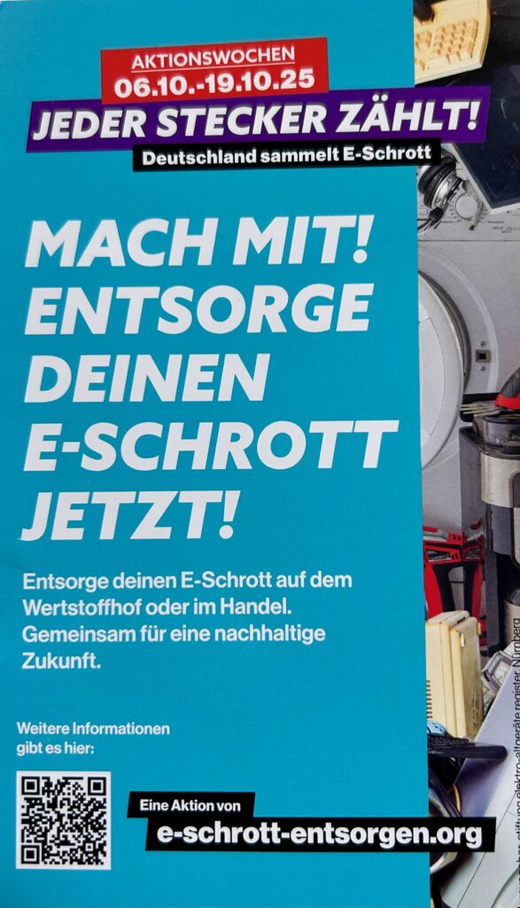 (Vogtlandkreis). Schon zum zweiten Mal ruft die „Stiftung elektro-altgeräte register“ zu den deutschlandweiten Sammel-Aktionswochen für Elektroschrott auf. Rund um den internationalen E-Waste-Day am 14. Oktober 2025 wollen Kommunen, Unternehmen und Entsorgungsbetriebe überall in Deutschland das Bewusstsein für die richtige Entsorgung von Elektro-Altgeräten stärken.