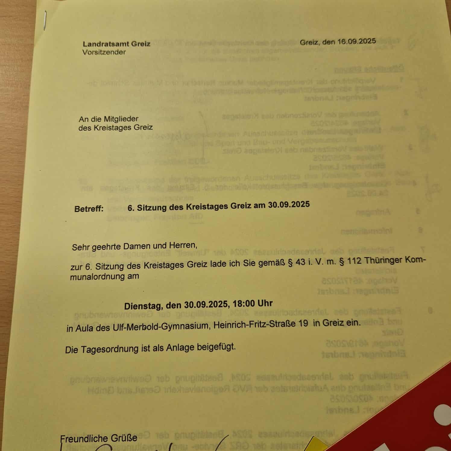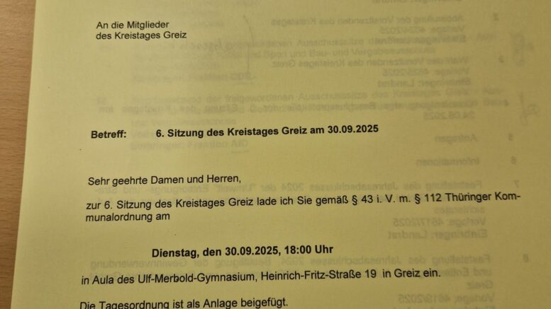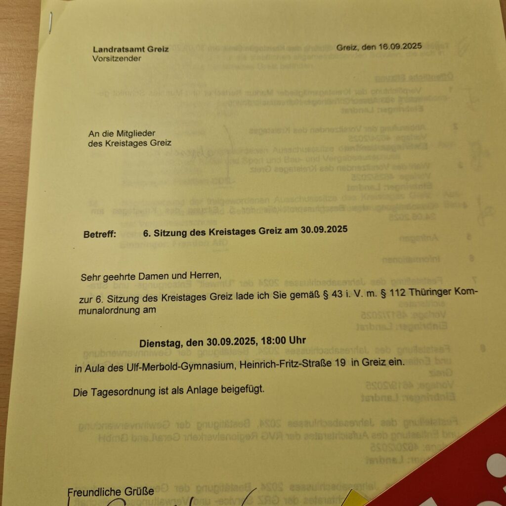 Einladung zur Sitzung des Kreistages (KT) Greiz (Foto: privat)