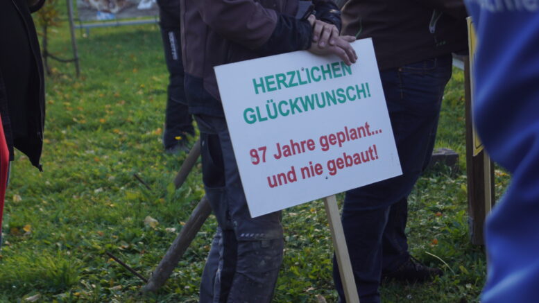 (Landkreis Greiz) Am Dienstag fand zum wiederholten Male eine Kundgebung für die seit 97 Jahren geplante Ortsumgehung Großebersdorf – Frießnitz – Burkersdorf (B175) statt. Neben dem Bürgermeister Oswald Gmeiner sprachen Thomas Trommer sowie Stephan Brandner. In dem Zeitraum von 16:30 bis 17:00 Uhr wurde die Ortsdurchfahrt dafür voll gesperrt. Allem Anschein nach wird der erste Spatenstich wohl noch eine ganze Weile dauern.