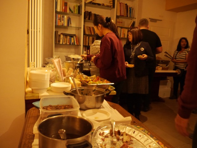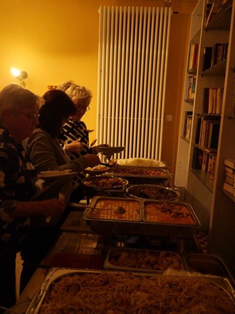 Über private Kontakte zu Kittima Fritz (der Betreiberin der in der Region ansässigen Massagekette „Thai Time“) und deren Lebensgefährten Ted wurde die Idee zu einem Original Thai-Food-Buffet geboren. Tatsächlich strömten gegen 18.30 Uhr eine Vielzahl von asiatischen Damen (teils mit ihren Männern) in das Café, um gemeinsam das Buffet aufzubauen. Dies nahm einige Zeit in Anspruch.
