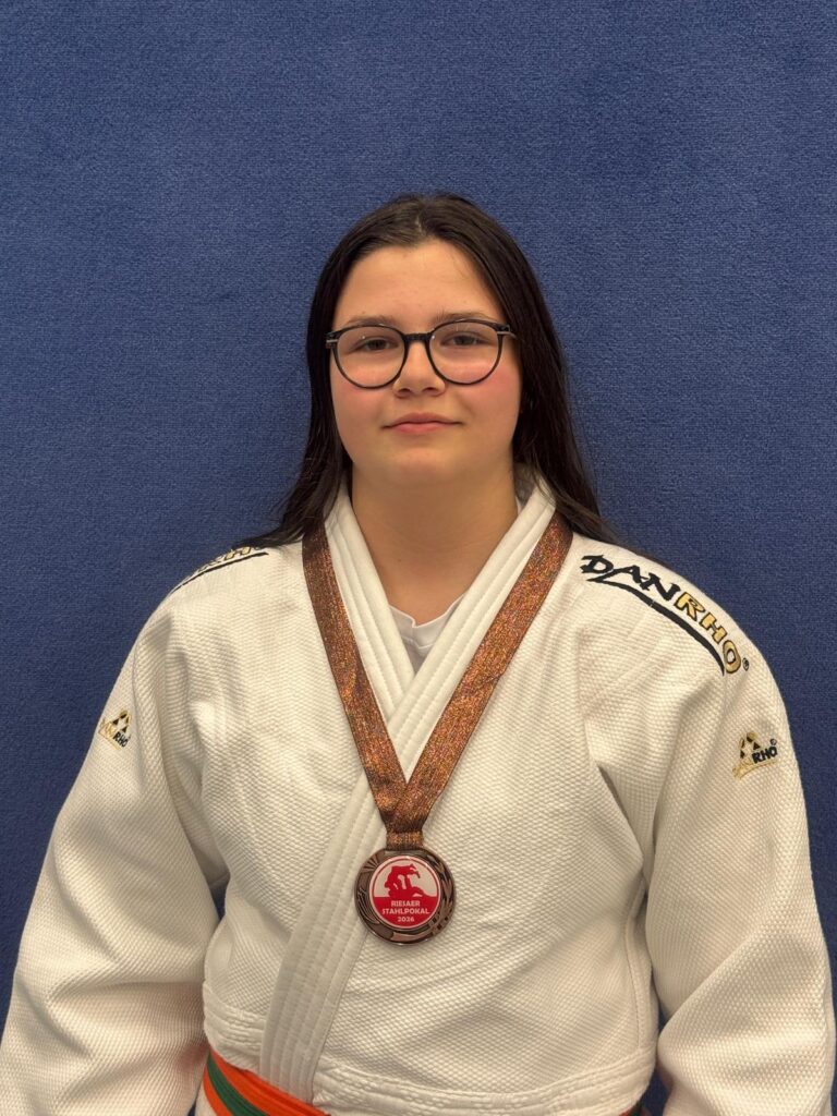 Am Wochenende fand in Riesa der jährliche „Stahl – Pokal “ der Altersklassen U13 und U15 statt. An diesem Turnier nahmen am Samstag über 360 Judokas aus 42 Vereinen teil. Mit dabei waren auch Anna Jolina Berger und Emely Möller vom JC Dynamo Oelsnitz. Anna musste im Modus „ jeder gegen jeden“ antreten. Ihren ersten Kampf gewann sie vorzeitig mit einem Ippon (vollen Punkt). Bei den anderen Auseinandersetzungen musste sie sich den erfahreneren Gegnerinnen geschlagen geben, konnte sich aber am Ende über die Bronzemedaille freuen. Emely Möller versuchte tapfer gegen ihre Kontrahentinnen mitzuhalten, konnte aber leider keinen Sieg erkämpfen und schied ohne Podestplatz aus.
