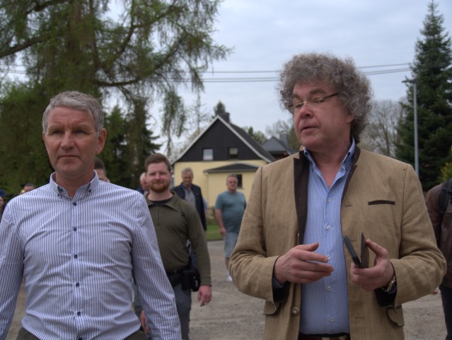Höcke, Urban und Moosdorf wanderten derweil friedlich und ungehindert im Werdauer Wald