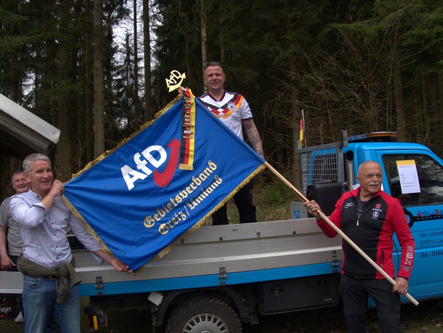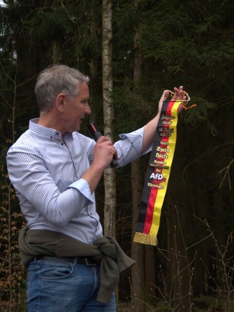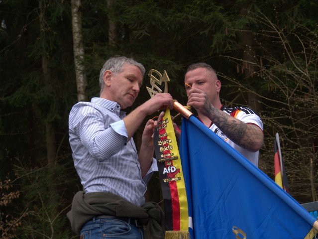 Danach bezog sich Höcke auf seine Rede und freute sich, dass er diese mit dem ersten Fahnenband des Landesverbandes ehren konnte.