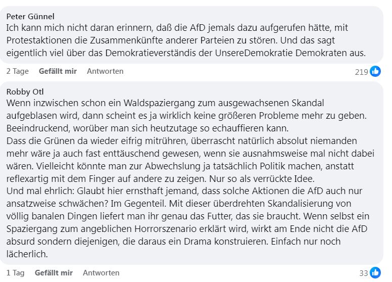 Kommentar hinterlassen zu "AfD-Fahnenweihe im Wald, Antifa-Demo vor sprachlosen Bäumen"