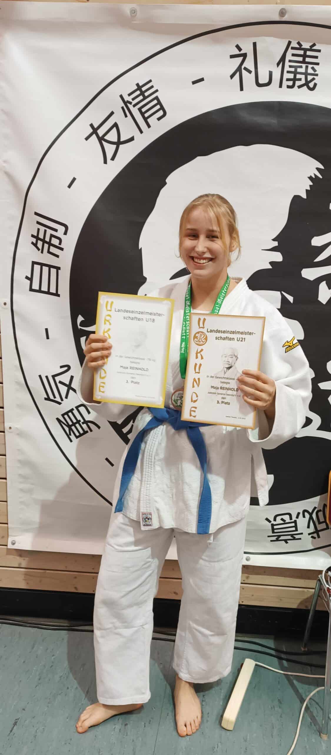 In der Nähe von Rammenau fanden am vergangenen Samstag die Landeseinzelmeisterschaften des Freistaates Sachsen in den Altersklassen U18 und U21 statt. Als einzige Starterin des JC Dynamo Oelsnitz ging Maja Reinhold auf die Matte. In der Gewichtsklasse bis 78 Kilogramm erkämpfte sich Maja in beiden Altersklassen jeweils die Bronzemedaille. Mit diesen starken Leistungen qualifizierte sie sich zugleich für die Mitteldeutschen Meisterschaften, die in zwei Wochen stattfinden werden.Der JC Dynamo Oelsnitz gratuliert Maja Reinhold herzlich zu diesem sportlichen Erfolg.