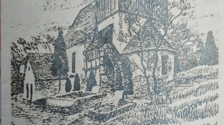 AIte Kirche zu Hermannsgrün bei Greiz. Sie stammte in ihrem ältesten Teil (AItarplatz mit Rotunte) aus der Zeit vor Beginn der Frühgotik . Um 1500 durch Anbau eines Langhauses (Frühgotik ) erweitert und dann im Renaissance Stil unvorteilhaft ausgebaut. Sie besaß 2 Emporen mit biblischen Bilderschmuck . 1892/93 wurde sie wegen Baufälligkeit abgerissen. Abb. 2 ist eine Zeichnung des Mohlsdorfer Hermann Pampel