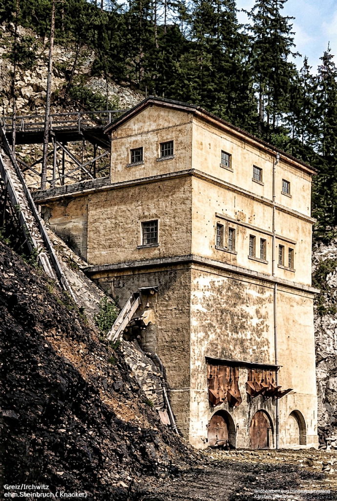 Der unscheinbare Betonklotz am Wegesrand ist ein Relikt des ehemaligen Diabas-Steinbruchs im „Sorgbruch“, der bis über 1930 hinaus genutzt wurde. Das harte Gestein wurde mit Sprengungen gelöst, talwärts transportiert und von Hand weiterverarbeitet. Dies war eine körperlich anspruchsvolle und gefährliche Arbeit.