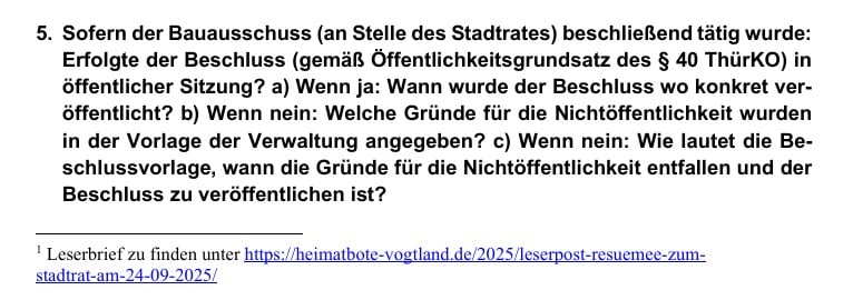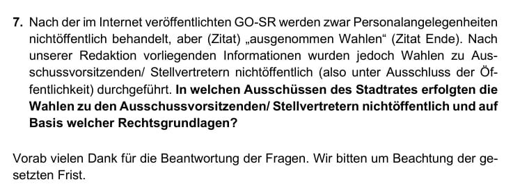 Wir wollen daher unsere Leser informieren, welche Fragen wir gestellt haben und wie der Bürgermeister (nicht) geantwortet hat.
