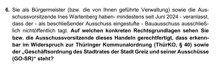 Jeder Greizer mag aus diesem Verhalten des Bürgermeisters seine eigenen Schlüsse ziehen. Das rechtswidrige Verhalten des Greizer Bürgermeister wird seitens der Redaktion weitere Schritte nach sich ziehen.