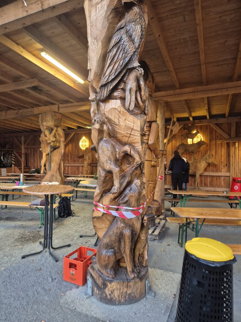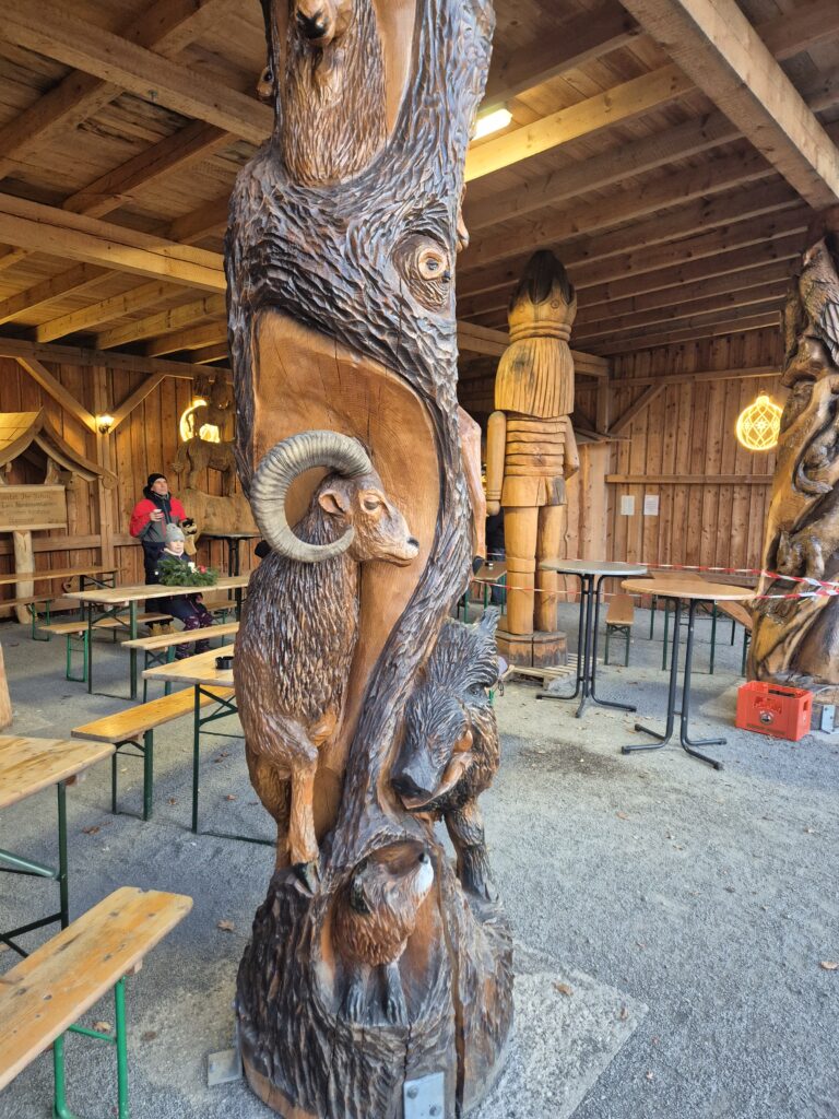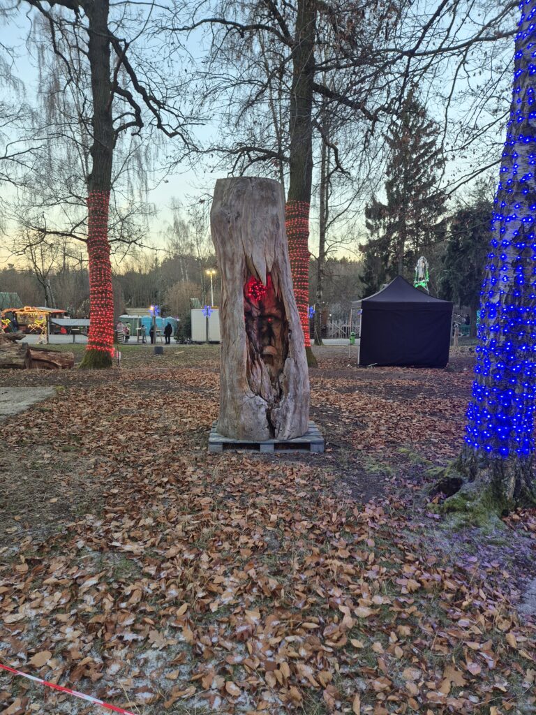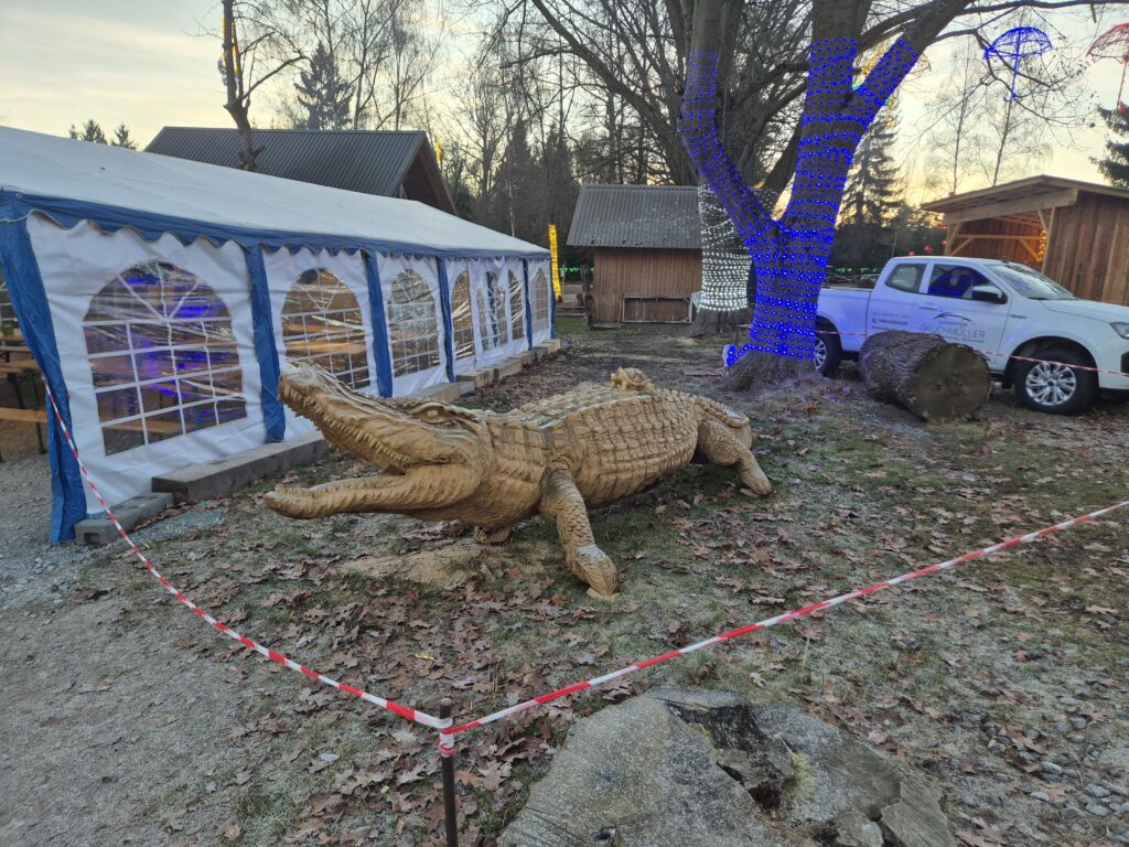 Dass Arbeit mit der Kettensäge vielfältig sein kann, sieht man an allen Stellen im Park.
