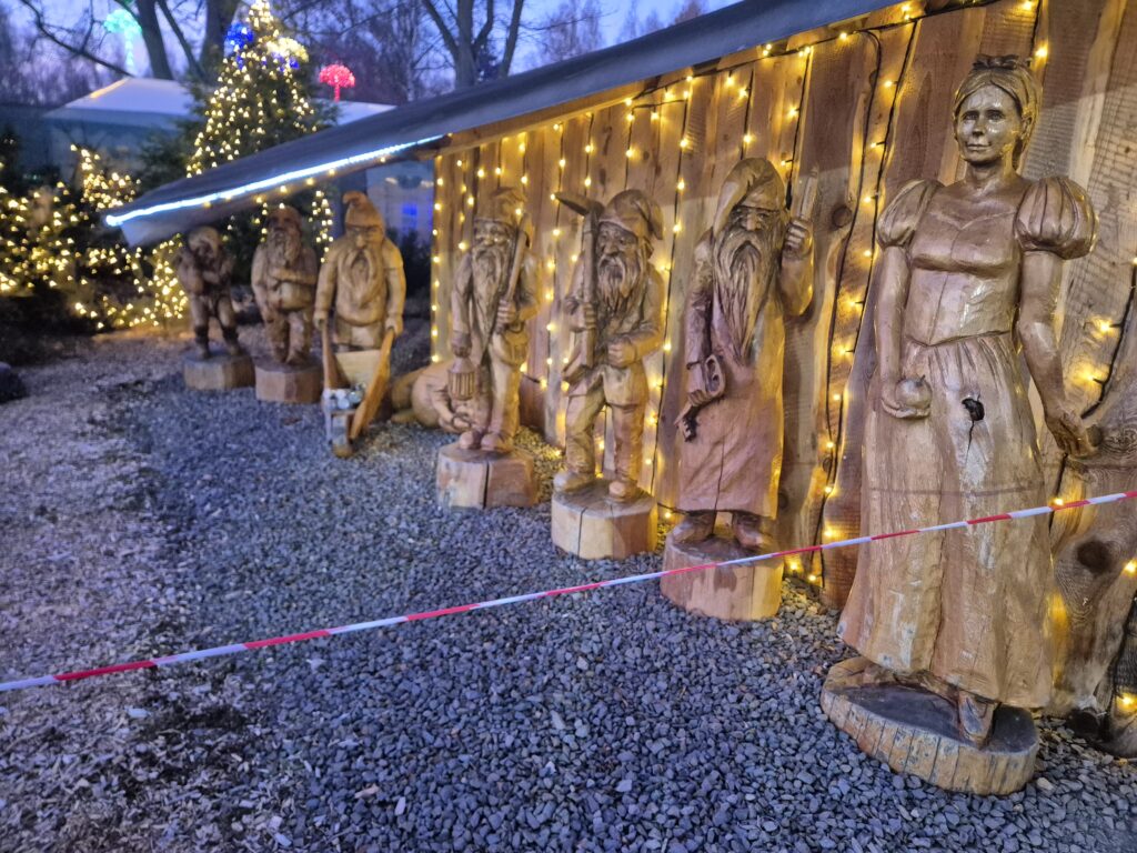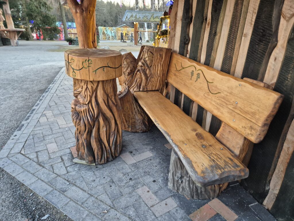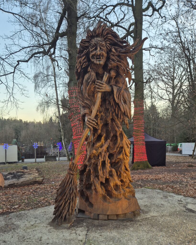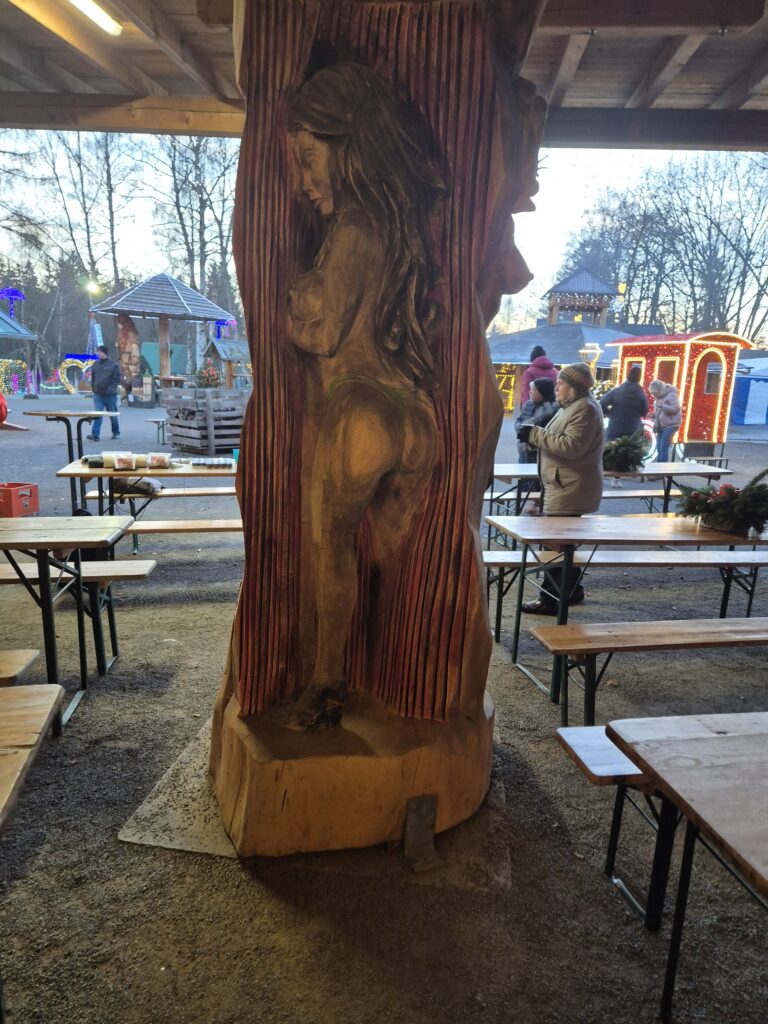 Dass Arbeit mit der Kettensäge vielfältig sein kann, sieht man an allen Stellen im Park.