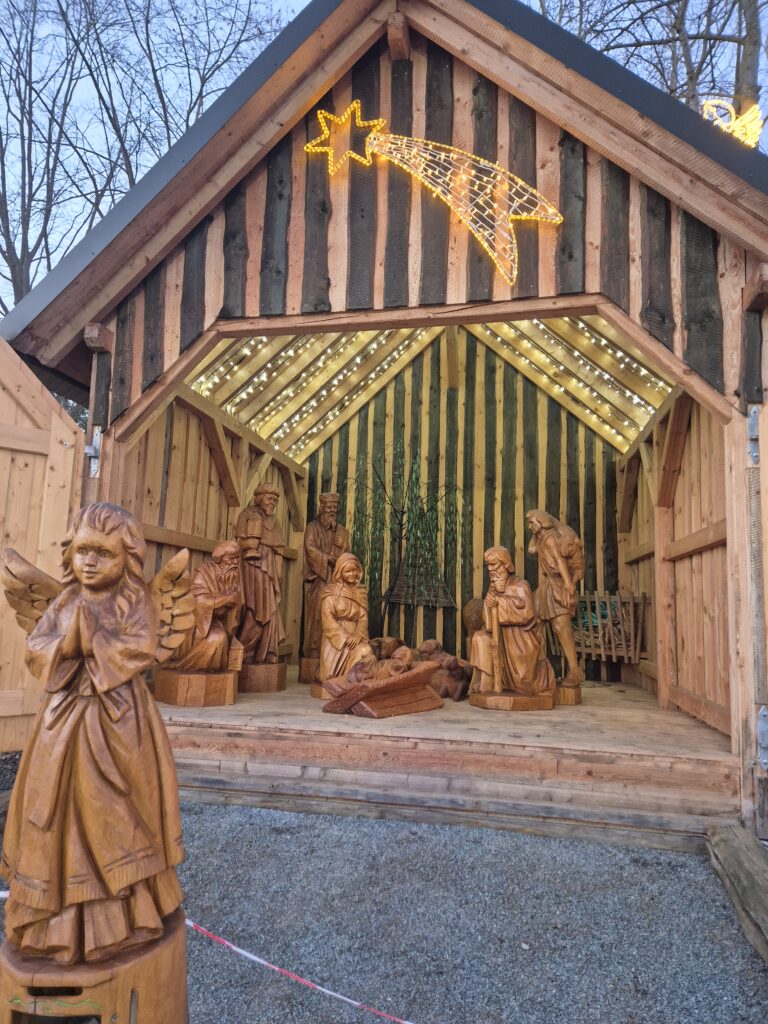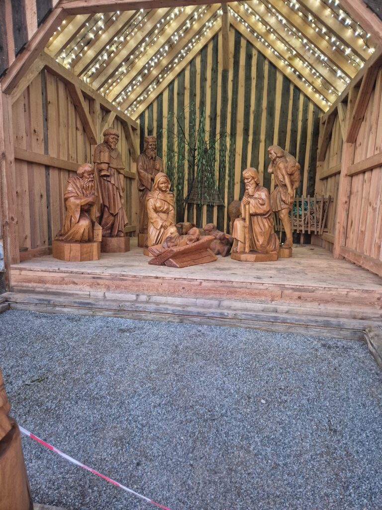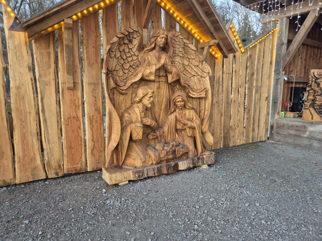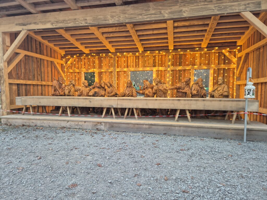 2024 wurde Jesus mit seinen 12 Aposteln an einem 8 Meter langen Tisch platziert und angepasst, analog dem bekannten Gemälde. Nun fehlt nur noch die Überdachung, die hoffentlich in diesem Jahr noch zum Stehen kommt, um das Meisterwerk zu vollenden….“