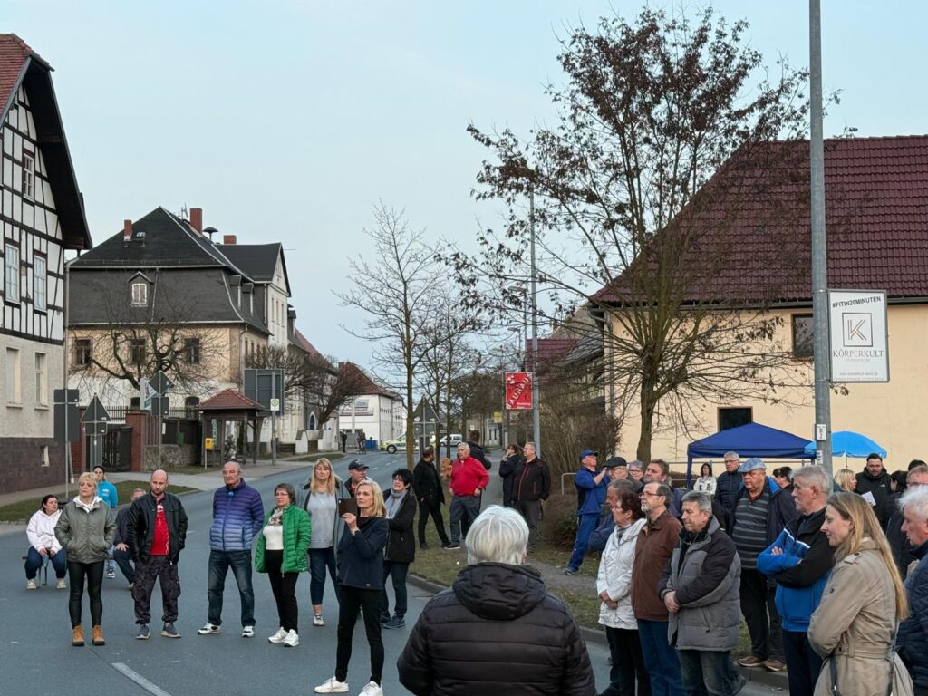 Die Veranstaltung fand direkt auf der Straße statt, nachdem die B175/B2 für etwa 30 Minuten gesperrt worden war. Zu den Rednern gehörte der Bundestagsabgeordnete Stephan Brandner (AfD). In seiner Rede kritisierte er die aus seiner Sicht falschen Prioritäten der Bundespolitik. Während wichtige Infrastrukturprojekte in Deutschland nur schleppend vorankämen, würden Millionenbeträge in Projekte im Ausland investiert. Als Beispiel nannte er Radwegeprojekte in Peru, während dringend benötigte Verkehrsprojekte vor Ort weiterhin auf sich warten ließen.