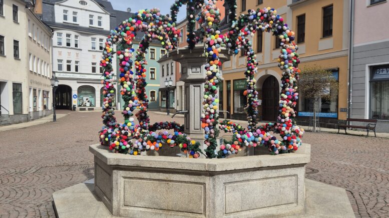 Osterbrunnen auf dem Greizer Markt - 2026 (Foto: HBV/rk)