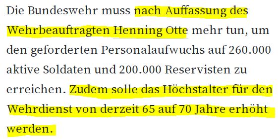 Wehrbeauftragter will Höchstalter für Wehrdienst von 65 auf 70 Jahre erhöhen!