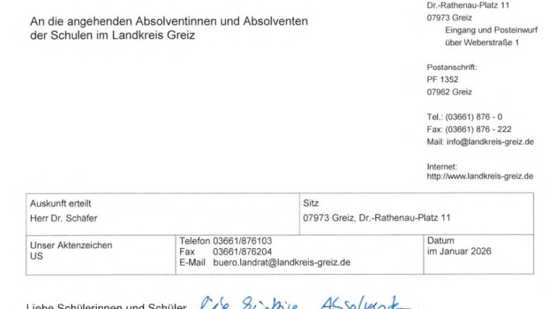 Das Schreiben, das 2025 erstmals in der Form an die angehenden Schulabsolventen im Landkreis