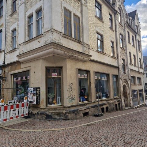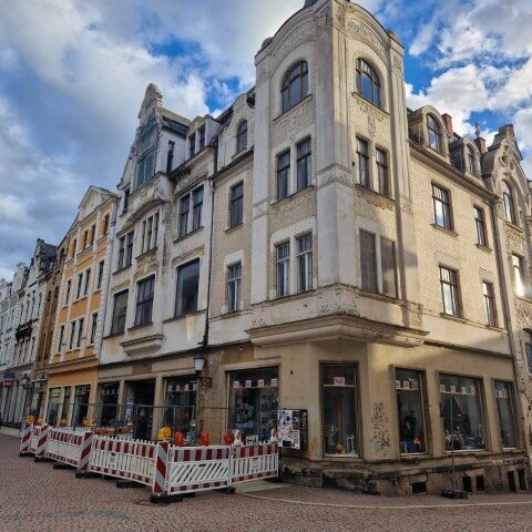 In der Kreisstadt zeigt sich also weiter, wie die versprochenen „blühenden Landschaften“ der CDU konkret aussehen. Nach der Aufregung wegen des im Raum stehendenden Gebäudeabriss Bruno-Bergner-Straße 2 (inclusive Sperrung der Bundesstraße B94) folgte ein weiteres Gebäude in der Carolinenstraße (der HBV berichtete hier). Damit nicht genug, nun auch die „gute Stube“ der Stadt auf dem Markt bzw. der Marktstraße. Das immer hoch gelobte Jugendstil-Ensemble der Kreiststadt droht zu zerfallen, der Charme von Greiz geht stückweise verloren.