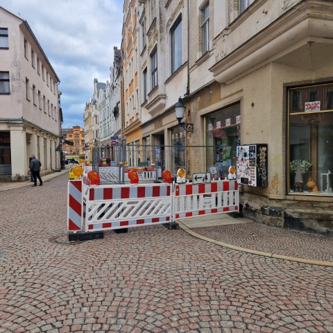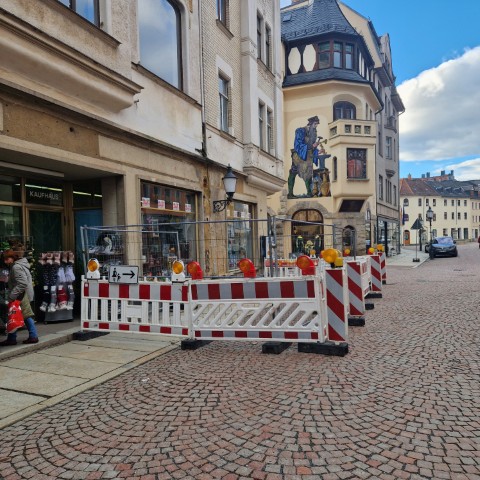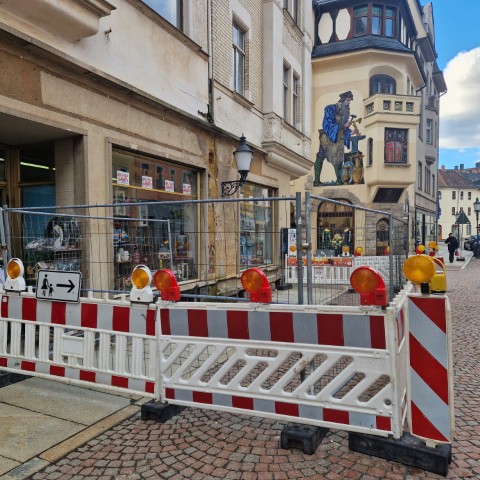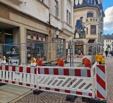 (Greiz). Nach jahrzehntelangen „Beobachten“ (ein nettes Synonym für „wegschauen“) durch Stadtverwaltung und Landratsamt wird nun beim „DUK“ (dem ehemaligen Konsum-Kaufhaus) die Vernachlässigung der letzten Jahrzehnte offenkundig. Seit dieser Woche findet man dort ebenfalls eine Absperrung des Gehweges.