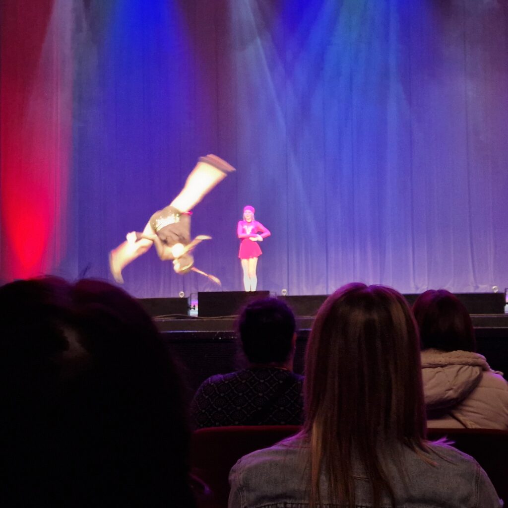 Nach den Lucky Line Dancer zeigten die Peppermints-Mädels noch ein Hip-Hop-Medley, bevor sich die wahre Bedeutung des Wortes „Künstlergala“ offenbarte. Denn die Peppermints wollten keine Tanzgala kreieren, sondern etwas neues: Eine Künstlergala als Verbindung verschiedener Kunstgenres an einem Abend. Dieser Anspruch ist vollauf gelungen.