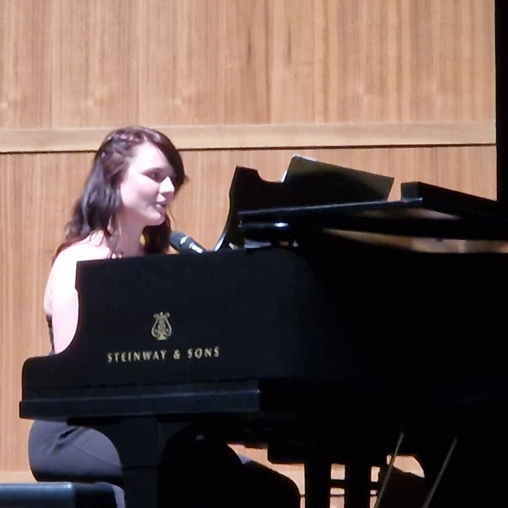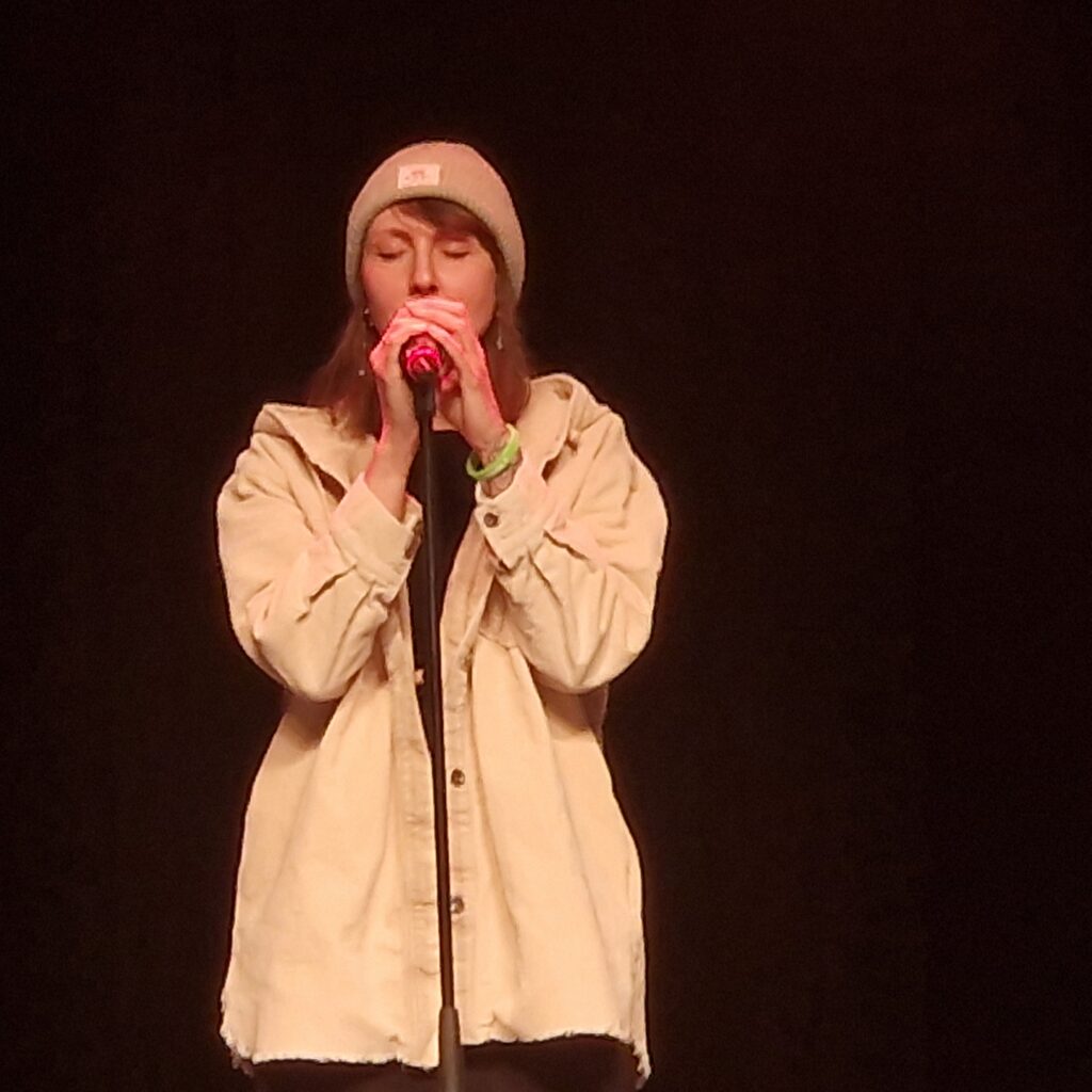 Denn danach hatte Nathalie Fomin ihren erste von zwei Solodarbietungen am Flügel. Zunächst mit dem Titel „Offenes Buch“ (Silbermond), im zweiten Teil mit „Kann es wirklich Liebe sein“ (Elton John aus „König der Löwen“). Auch die Sängerin Mine (Tina Rubner) hatte in beiden Programmteilen je einen Auftritt – mit „I see Fire“ (Ed Sheeran) bzw. „Lieblingsmensch“ (Namika). Beide erhielten ebenfalls viel Applaus für ihre Darbietungen. Selbst in der Pause wurden die Besucher vom Duo „Zweisamkeit“ (Louisa Joachim und Christian Rödel) musikalisch unterhalten.