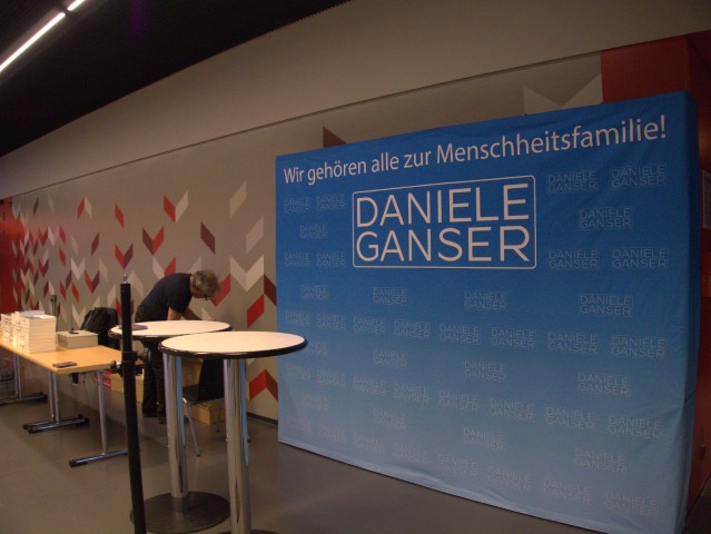 Unter dem Gelächter des Publikums begrüßte Wächter „natürlich auch diejenigen, die heute dienstlich hier sind.“ Gemeint waren die „Schlapphüte“ der „Dienste“, denen die Recherchen wie auch die Vorträge des Historikers Dr. Ganser schwer im Magen liegen.