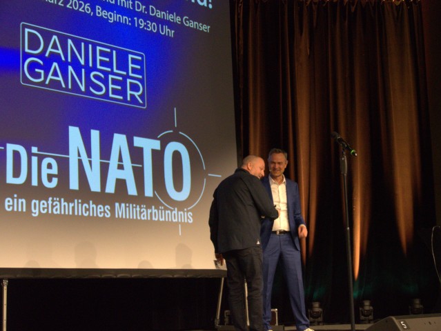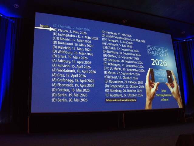 (Plauen/ Vogtlandkreis). Auch wenn die selbst ernannten „Qualitätsmedien“ meinen, durch Ignoranz der Vorträge von Dr. Daniele Ganser die Deutungshoheit der Meinung beherrschen zu können- die Wahrheit kann man nicht totschweigen. Am Montag (2.3.2026) zeigten in der Stadthalle Chemnitz 1.700 Besucher, dass MDR oder Freie Presse wohl nicht deren „Quelle“ zur Informationsgewinnung sind. Am Folgetag (Dienstag, 3.3.2026) bewiesen in der ebenfalls ausverkauften Festhalle Plauen 900 Menschen, dass sie „wach“ sind. So hatte es Ganser´s Pressesprecher Dirk Wächter bei der Anmoderation zum Vortrag „Die NATO- ein gefährliches Militärbündnis“ unter dem Jubel der Gäste ausgedrückt.