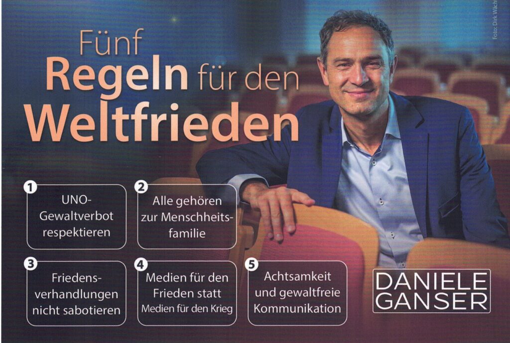 Jeder vernünftige Mensch wird sich fragen: Was ist an den fünf Regel für den Frieden so gefährlich, dass Chefredaktionen ihren Journalisten (die doch sonst jeder Story und jedem davongehoppelten Kaninchen hinterherjagen) untersagen, über die Veranstaltungen dieses international anerkannten promovierten Historikers zu berichten?