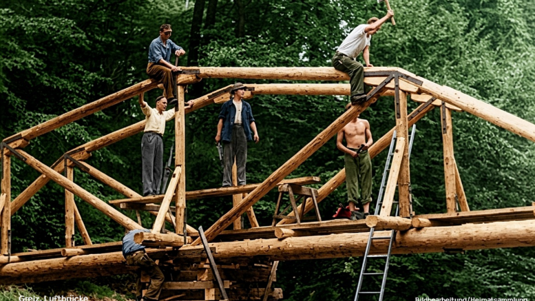 Greiz,ehm. Luftbrücke im Greizer Park 1953 Im Einsatz für das ,,Nationale Aufbauwerk (NAW)“ bauten Schüler der ,,Fachschule für Bauwesen Greiz“ in Greiz- Aubachtal eine winterfeste Luftbrücke, die im Juli 1953…